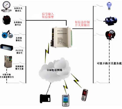■输出控制:产品提供8路开关量输出接线端子,其中2路是继电器输出,可直接控制120AV、3A的设备,其余6路为OC门输出,可直接外带继电器。可以通过短信指令发出驱动信号,让继电器做断开或吸合动作,从而驱动设备的控制节点。