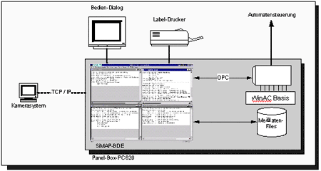 - 摄像系统的四个SiMAP® - 模块, PLC-(WinAC-), 用户接口和数据处理