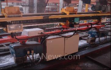 i.新制自行小车18台,每台小车的车载PLC选用菲尼克斯ILC150ETH PLC,完成小车启动、停止、吊具的升降及各工序工艺时间的控制,实现小车的智能化。通过以太网接口与无线客户端(EC)连接,再通过无线网络与无线接入点(AP)通讯,从而实现车载PLC与地面主控PLC的数据交换。