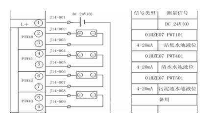 模拟量输入:一站集水池液位,二站集水池液位,清水池液位,污泥池液位,过渡水池液位,溶药箱液位,流量计和四个进化器的浊度和压差。