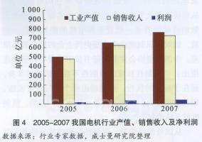我国的电机行业属于低附加值的劳动密集型行业,竞争激烈,供大于求,利润微薄。统计数据显示,2005年到2007年,行业的净利率分别仅有3.2%、5.3%和5.5%(图4)。
