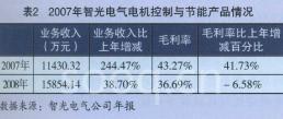 其变频调速产品近年来增速迅猛,2007年该公司的电机控制与节能类产品业务收入为1.14亿元,同比增加244.5%,毛利率43.3%,同比增加41.7%。在2008年,内部产能扩张和外部经济环境恶化导致毛利率略有下降,但业务收入仍有不小的增长(表2)。