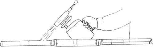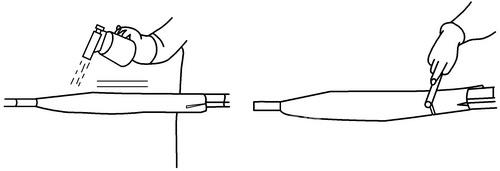 13.用喷灯首先对热缩管夹条(拉链)两侧进行加热,使热缩管拉链两侧先收 缩, 然后再从热缩管中下方加热.