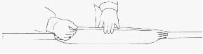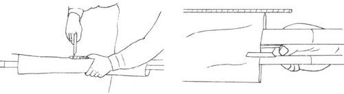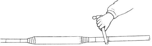 15.整个热缩套管加热成形后,再对整个夹条(拉链)两侧均匀加热约一分钟左右,然后用锤子柄轻敲打热缩管两端弯头处夹条(拉链),使热缩套管夹条(拉链)与内衬套紧密粘合.