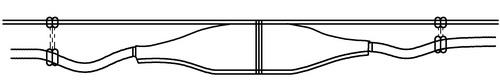17.架空和挂墙电缆接头固定,要求接头位置稍高于电缆,形成接头两端自然下垂,使雨水往两端流,接头的夹条(拉链)必须安放在电缆的下放。