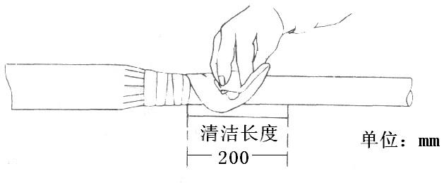 5.用清洁剂清洁内衬管的两端电缆外护套,长度为200mm.