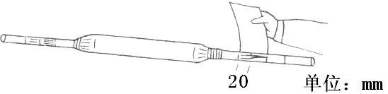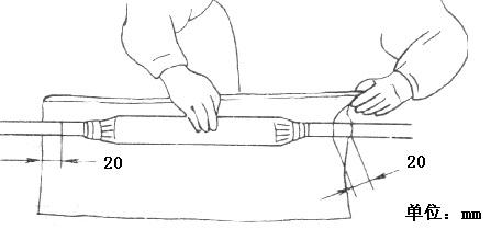 7.在热缩套管两侧向内侧20毫米处的电缆护套划上标记.