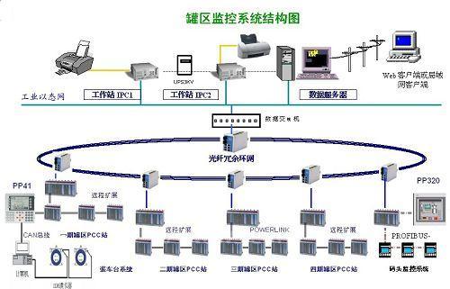 整个罐区的通讯网络采用基于TCP/IP协议以及Server/Client配置方式的分布式体系结构,支持实时数据共享和分布式数据库,易于扩展采用以太网和TCP/IP协议构建的通讯网络平台,并通过标准OPC协议实现数据服务器与各PCC之间的数据交换。同时控制器的各设备供应商均提供以态网接口,能实现从底层到最上层的无缝连接和实时、高速的数据传输。