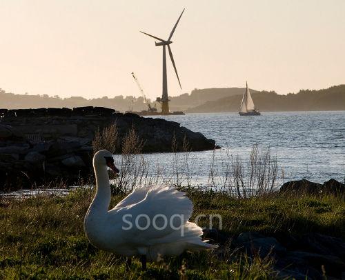 日前,全球首个近海可漂浮风力涡轮发电机在挪威北海海域正式投建。这座发电机名为Hywind,长约65米,重达5300吨。Hywind发电机被置于一座浮动的平台上,该平台通过3根电缆同海底固定,而浮台内部放有水和岩石当做压舱物以帮助其保持平衡。