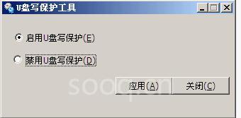 “U盘写保护工具”首次“应用(A)”“启用U盘写保护(E)”时,要求先断开U盘连接再插入,而“禁用U盘写保护(D)”却不需要重新插入。这个“U盘写保护工具”软件的实质是对WINDOWS注册表中的USB存储器的写保护属性进行修改,是一个绿色软件。