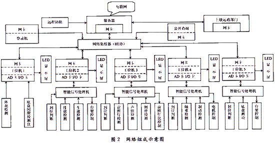 该控制系统的信号传输主要分4种:测量信号;开关量输入信号;开关量输出信号;过程指示信号。通过这4种信号,工位机可实现对车辆位置及设备位置进行准确地测控,并对每个工位传感器的实时进行数据采集。