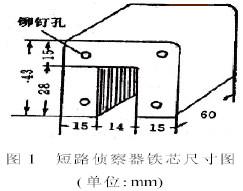 短路侦察器是用来检查定子或转子电路中短路或开路现象的专业工具, 也可自制。具体做法: 用日光灯镇流器的铁芯制成“ā”形铁芯, 拼接后如图1 所示。用木板将铁芯夹紧至两直柱处, 用铆钉紧固。
