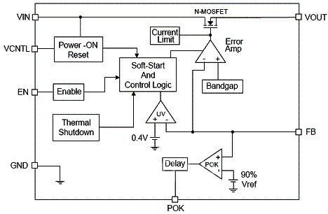 LDO是一种用途极为广泛的集成电路(IC),它的优点有:电路架构简单、输出纹涟波很低、外部组件很少且简单等等。一般的LDO架构为:一个误差放大器驱动一个P型MOSFET,利用回授电位与参考电位做比较,使输出保持在正确的电压。但是当系统中需求的是超低压差、低输出电压(0.8~1.8V)、高输出电流时,用传统单电源、P-MOSFET的架构来设计LDO就变得相当困难了。因此AX6610-6615超低压差稳压器系列产品采用N-MOSFET来当驱动器,以相同大小的驱动器来说,N-MOSFET的驱动特性一般来说是优于P-MOSFET的。但在低输入电压时,N-MOSFET的驱动特性又显不足,且可能不适合整个IC的工作电压。为此,采用了另一组电源输入来提供IC稳定的工作电压,并且大大提升N-MOSFET之驱动能力。藉此方法达成低电压输入转换低电压输出并且能驱动大负载电流。