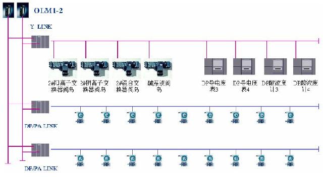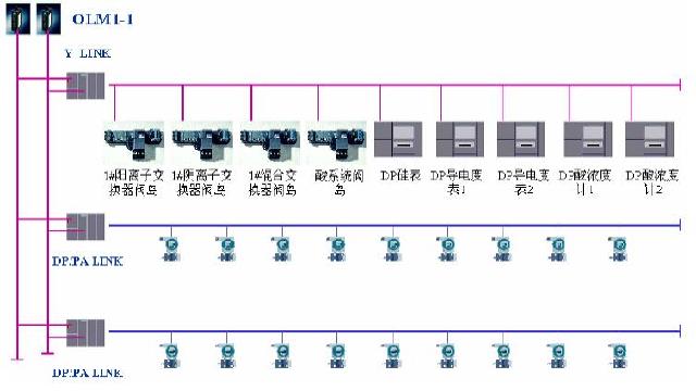 我们知道补给水系统由预处理系统、化学除盐系统和酸碱系统构成,主要工艺设备包括阴床、阳床、混床、酸碱箱、风机、水泵等,主要测量仪表包括压力变送器、差压变送器、液位计、流量计、温度、酸度计、碱度计、硅表、钠表、浊度计等;另外还有大量的气动隔膜阀、电机等。对于这样的系统,我们可以采用PROFIBUS 总线来完成监控任务。