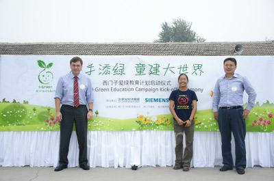 西门子东北亚区首席执行官,西门子(中国)有限公司总裁兼首席执行官郝睿强、《21世纪经济报道》创办人兼主编刘洲伟、北京同心实验学校校长沈金花今天共同在北京启动“西门子爱绿教育计划”。