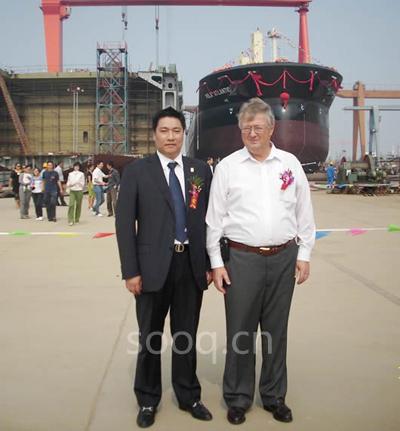 人民电器集团进出口公司总经理叶向宇、英国船东GRAI公司代表格兰格、山东百步亭船业有限公司董事长刘宜蓉和前来庆贺的山东荣成市市长王强、常务副市长王秉伟,湖北武汉市副市长岳勇等600多名中外嘉宾、企业员工共同见证了这一历史时刻。