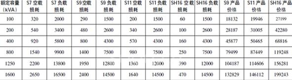 性能代号的涵义为:在S7型以上,空载损耗每降低约10%,代号“7”则在数字上加“1”。从S7型发展到S9型,负载损耗降低较多,平均为25%,后因没有突破性新材质,负载损耗下降较困难。所以性能水平代号以空载损耗降低为标准。以400kVA为例,S7型空载损耗920W,S11型空载损耗570W,下降38%。
