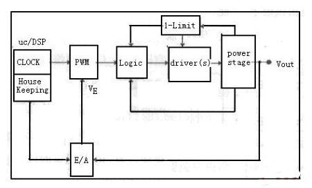 由于多路复用器和模数转换器的采样速率是固定的,模数转换器为每一个参数输出一系列数字,每一系列数字是由一个已知的周期分开。这些数值提供给一个微处理器,为系统提供了工作流程。电路板上的程序存储器存储了微处理器的控制运算法,用于执行一系列基于模数转换器输出值的计算。这些计算的结果是一些参数,例如误差信号,驱动级所需的脉宽,针对各种驱动输出优化的延迟值,以及环路补偿参数。模拟系统中外部环路不再需要补偿元件。生产过程中,参数的比较参考值,例如输出电压、输出电流、温度限定值存储在非易失性存储器里,或者在系统启动时可以下载到数据存储器中。