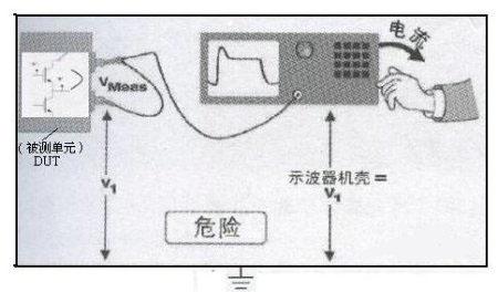 (b)不能使用示波器测量SMPS与示波器机壳间出现危险浮动电压的显示