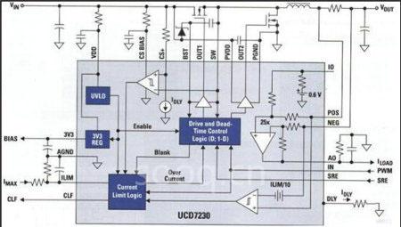 以UCD7230为例进行分析。UCD7230隶属于UCD7K系列数宇控制兼容驱动器,可用于采用了数字控制技术的应用或是需求快速局部峰值电流限制保护的应用。UCD7230是同步压降、4A MOSFET门驱动器。该器件极为适用于提供数字控制器间的桥接,例如UCD9K同步压降控制器。图6为UCD7230原理框图。