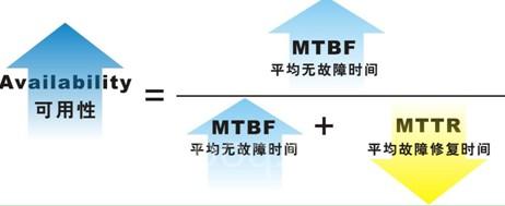 从上图可以看到,模块化电源系统通过“并联冗余”和“热插拔”技术,在提高了系统可靠性的同时降低了维修时间。但是,这里没有提到“可用性”,“可用性”到底是个什么东西?这就需要我们从“可用性”的概念及衡量公式谈起。