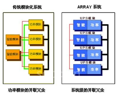 ARRAY系列模块化UPS是山特公司2003年推出的一款高频N+X冗余模块化UPS,是国内最早的模块化UPS产品之一。就目前的市场来看,ARRAY系列模块化UPS是业内少数能健康发展,有自主创新技术及运用比较成熟的模块化产品。相对于其他后起之辈,其不同点在于: