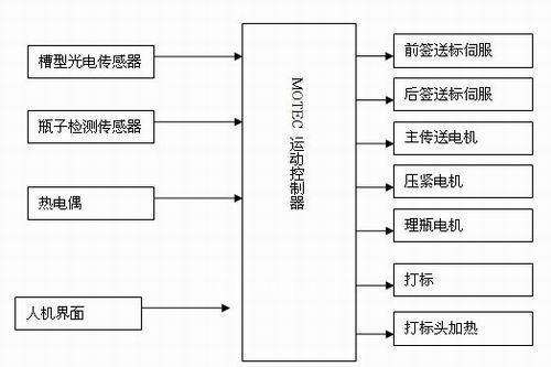 贴标控制系统的核心是运动控制器,采用MOTEC运动控制器,独有的高速色标采集功能,保证检测数据准确。压紧电机、理瓶电机以及主电机采用MOTEC步进电机,送标部分采用MOTEC交流伺服加MOTEC减速器。采用PV058-TST触摸屏做为人机界面