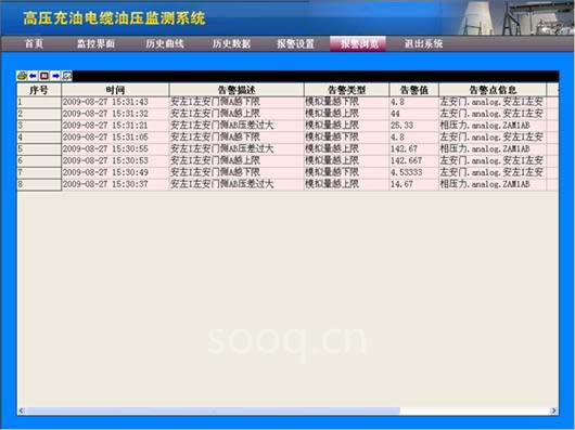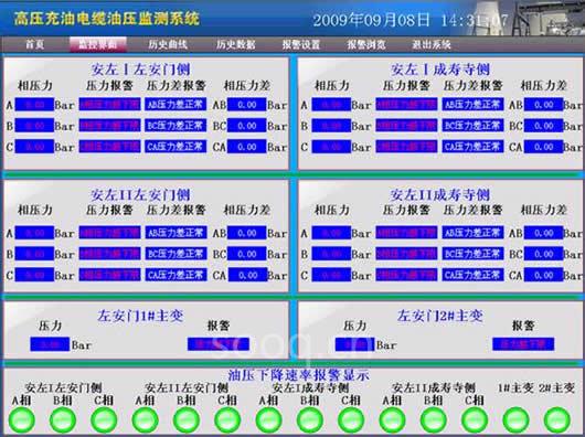 利用嵌入式技术和人机界面软硬一体化系统监视高压充油电缆的油压、压差和压力变化,实现报警处理、曲线显示、数据存储、数据上传等功能。