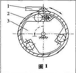 超越离合器通常在自动锻压机上是完成送料动作的主要机构,利用它的单向性完成棒形料的进给,送料长度精确、可靠。它的工作原理如图1所示:主动杆1带着2往复运动时,从动轴3做单向转动。我们利用它的主动轴转一周中180º使从动轴转动、另180º使从动轴停止的特性,来实现所需的间歇动作。