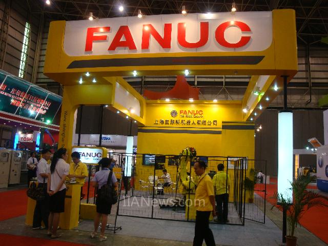 (上图:发那科机器人亮丽的黄色展台)