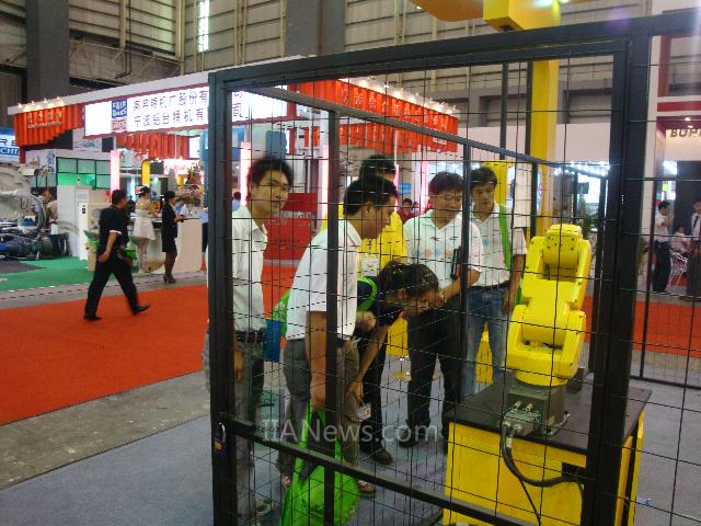 2009年9月中旬,上海发那科机器人有限公司旗下的多功能智能型机器人 R-2000iB和多功能小型智能机器人 LR MATE 200iC,以及醒目的黄色展台亮相亚太地区压铸展,吸引了众多参展专业人士的目光。发那科工作人员对前来咨询的客户和专业人士进行了详细介绍和愉快交流。不仅如此,在发那科的合作客户(丰汉电子、普莱克斯)展台上,也出现了“黄色小巨人”的身影。尽管开展当日恰遇台风,但发那科“智能机器人”仍以其优美合谐的黄色身姿舞动整个展会现场。