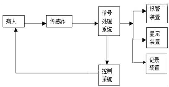 监护仪主要由4个部分组成:信号参数、模拟处理、数字处理、信息输出。根据临床需要选择不同的监护项目,监护仪便可通过相应的检测模块采集人体参数,再经过放大、滤波、转化,然后将检测信号进行运算、分析和存储,在结果输出显示的同时,系统还要协调各部分的工作,如分析报告、打印、报警等。