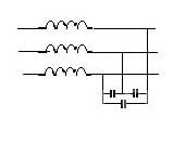 电压型变频器输出的是三相SPWM波,即宽度按正弦规律分布的矩形脉冲波。这种波直接送给电动机,由于电机是感性负载,所以能获得近似的正弦驱动电流。在本设备中存在有几千米的电缆线,若把PWM波直接加在电缆输入端,由于长线效应电机侧会受到数倍于额定值的尖峰电压的冲击,电机很可能被烧坏。因此三相低通LC滤波器是必要的,滤波器电路如图二.所示,在本设计中其截止频率约为载波频率的1/3。