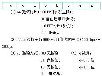 控制字寄存器SMB30用于存储通讯方式控制字,由用户写入,属于可读写的特殊标志位寄存器,其格式如下: