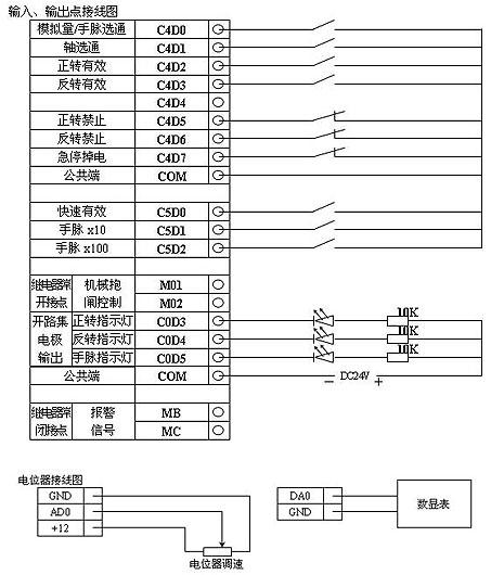 通过伺服控制器模拟量输出接口输入当前进给量的电压信号至数显表,显示当前进给量(mm/min),方便模拟量进给速度调节。