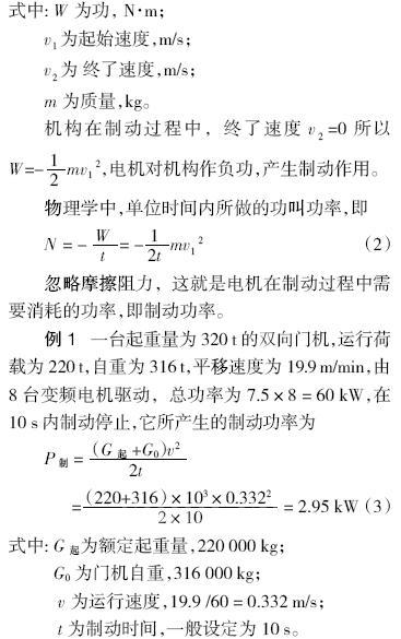 例2 2004 年我厂为广西两个电站设计制造了两台门机,这两台门机平移机构的变频器上都未设置制动单元。四年来,这两台门机运行状况良好,从未出现过直流过压故障。