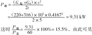 可以看出制动功率只占总功率的5%左右,也就是说平移机构制动时实际所消耗的功率是很小的。