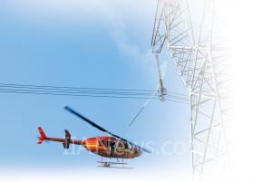 直升机带电冲洗绝缘子。
