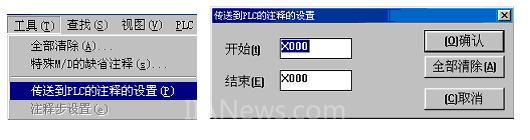 ③选择“工具”/“传送到PLC的注释的设置”,并设置需要传送注释的软元件范围。