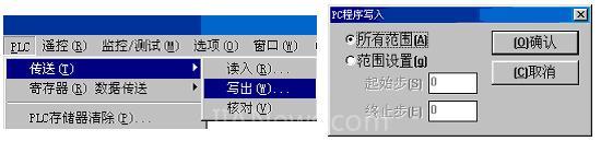④选择“PLC”/“传送”/“写出…”,并选择“所有范围”进行传送。