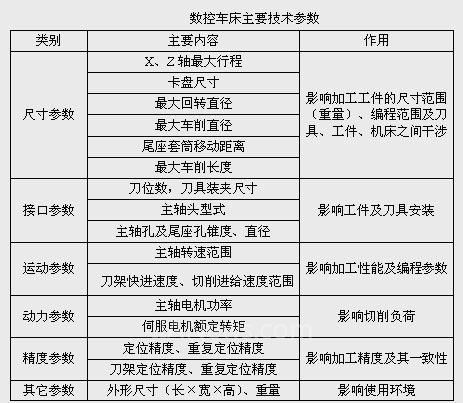 数控车床的主要技术参数包括最大回转直径、最大车削长度、各坐标轴行程、主轴转速范围、切削进给速度范围、定位精度、刀架定位精度等。