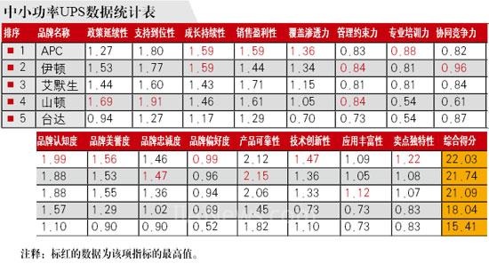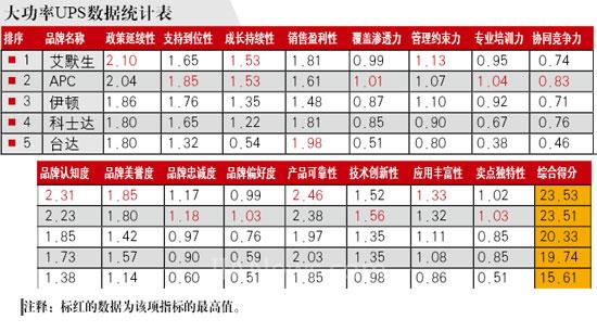 品牌力成为本届渠道冠军固守阵地的利器。在大功率段,艾默生以6.31分获得单项综合第一;而中小功率段获得第一的是APC,得分为6.00分。
