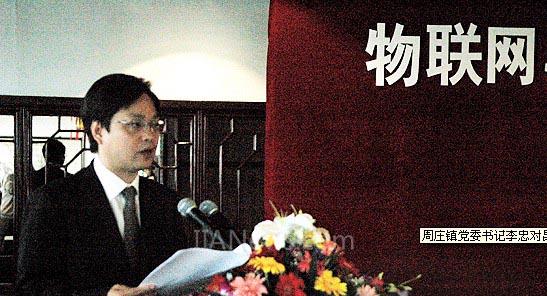 周庄镇党委书记李忠对昆山传感器产业基地进行介绍。
