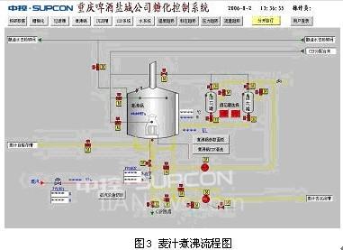 煮沸锅的控制:煮沸温度控制,酒花添加控制,糖浆添加控制,煮沸锅防溢锅控制,补水定量控制,加热蒸汽压力检测,液位控制,煮沸锅麦汁循环过程控制,进出料过程顺序控制,自动清洗、排污控制,热能回收控制。