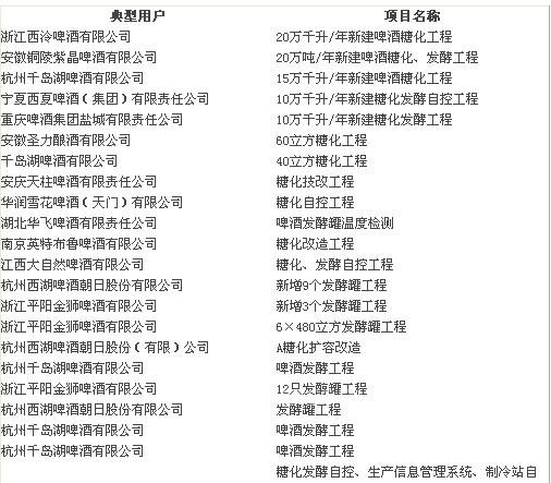 下面是中控在啤酒行业的典型业绩: