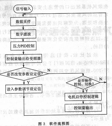 PLC软件采用梯形图语言,实现各种逻辑顺序控制,风压闭环控制等,程序框图如图3所示。