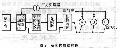 对原有煤气鼓风机加装变频调速装置,并且在鼓风机系统出口的管道上安装压力变送器,测定管道的风量变化,通过PLC对管道压力信号的变换和处理,为变频调速装置提供参变量,实现对频率的自动调整,也就是说对电机的转速进行调整,以达到根据负荷变化调整输出功率,节能降耗的目的。