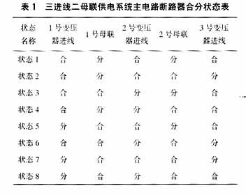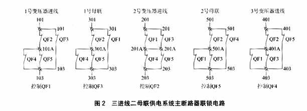 三进线二母联供电系统的供电要求是“五合三”,即在该供电系统中的5个主断路器,只允许且必须有3个主断路器同时处于合闸状态。