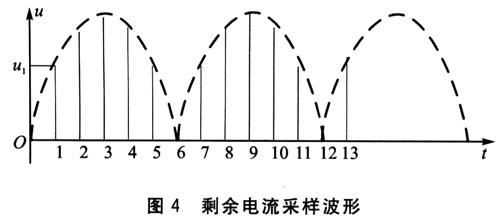 为保证剩余电流测量的实时性,该保护器采用数字采样法测量剩余电流,将剩余电流信号转换为图4所示的波形,送给P87LPC767单片机内部的A/D进行采样测量。