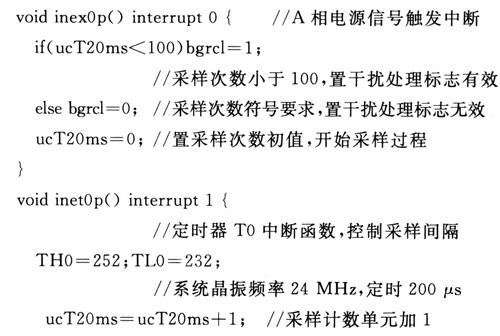 系统主程序通过对bgrc1进行判断,如果有效进行干扰软件处理,无效则采用测量过程没有受到电源的高频干扰,进行正常的计算处理。
